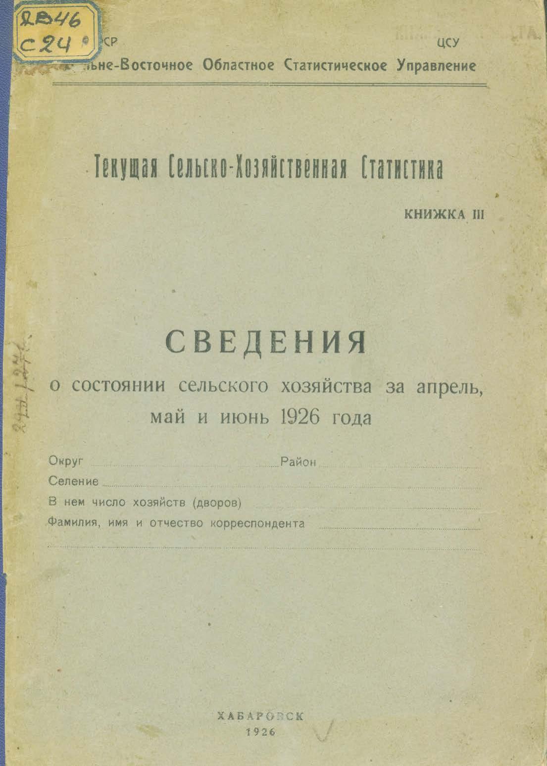 Серия "Оттиск из журнала "Экономическая Жизнь ДВ" № 1, 1926