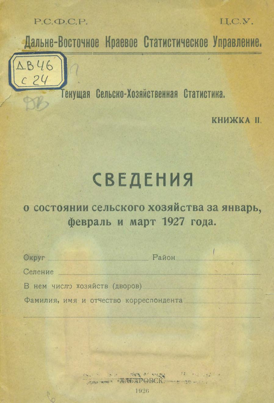 Серия "Оттиск из журнала "Экономическая Жизнь ДВ" № 5, 1927