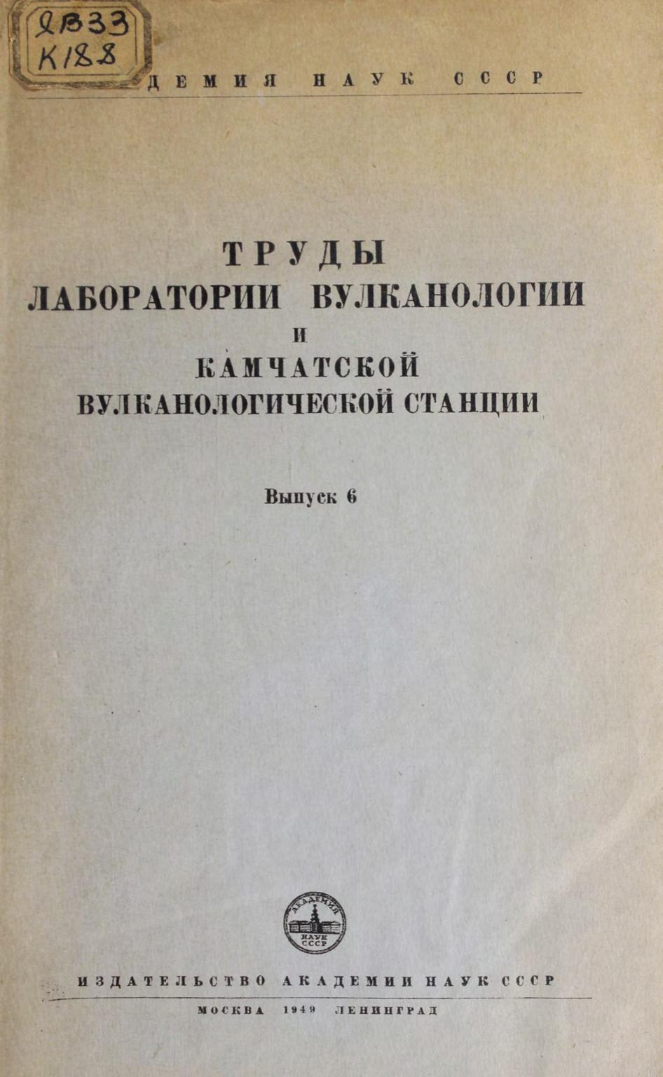 Серия "Труды Лаборатории вулканологии и Камчатской вулканологической ...