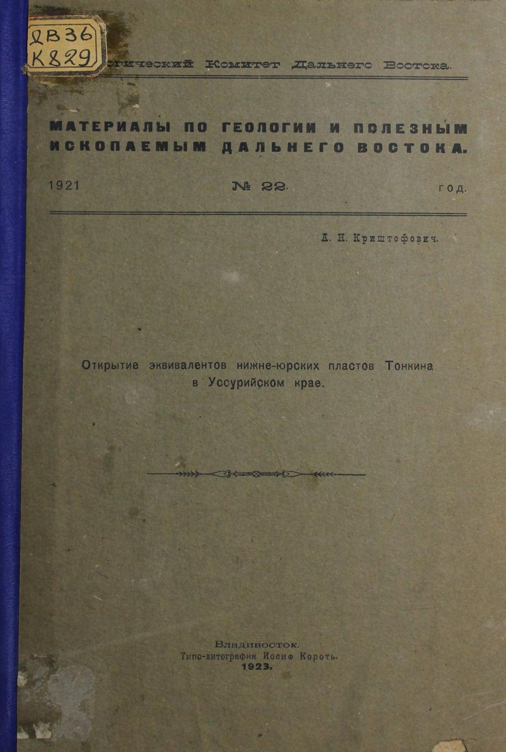 Материалы по геологии Дальневосточного края / Дальневосточный ...