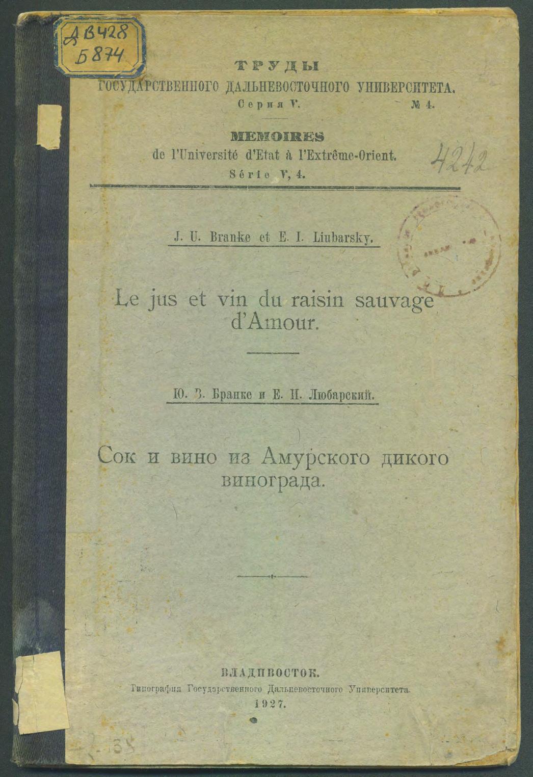 Отдельные оттиски из II (XIX) тома записок Владивостокского ...
