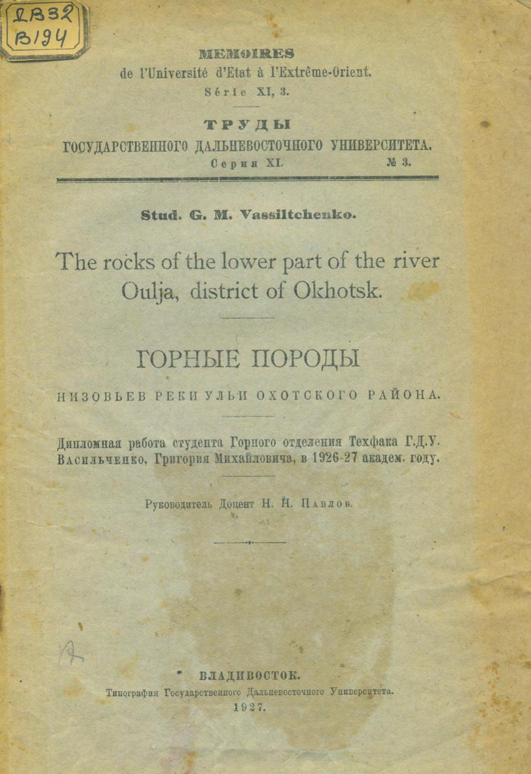 Серия "Труды Государственного Дальневосточного Университета". ...