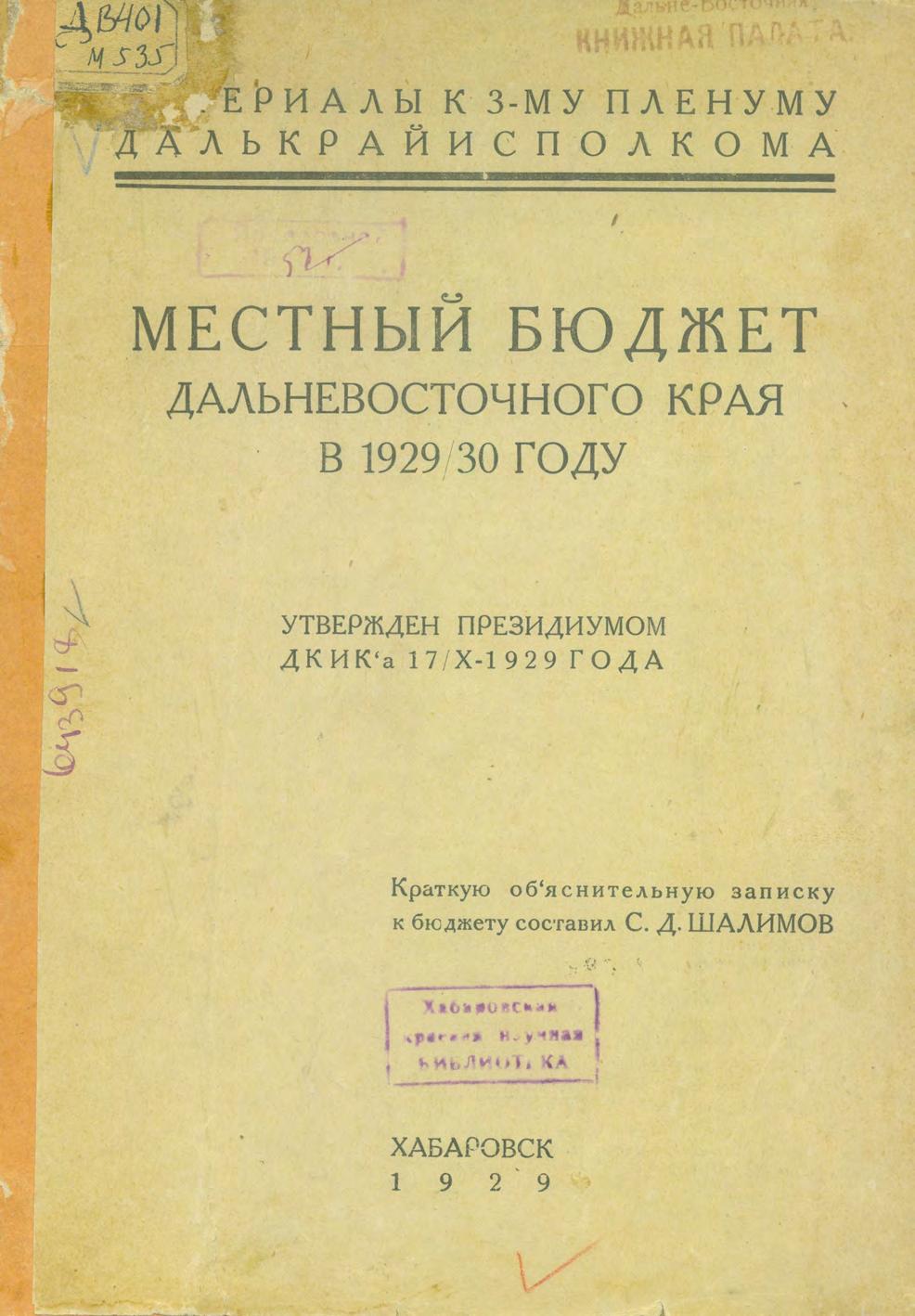 Серия "Материалы к 3-му пленуму Далькрайисполкома"